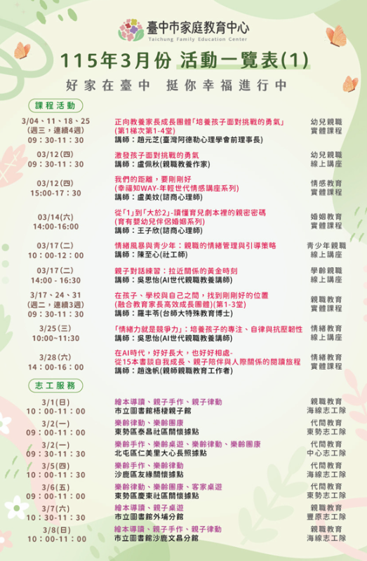 轉知~家庭教育中心3月份活動