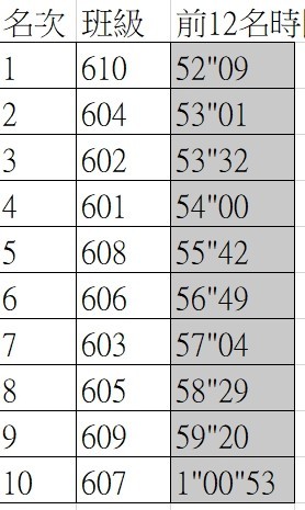※第一名班級將代表學校參加12/23(二)普及化大跑步。