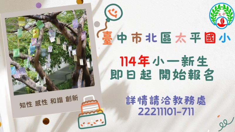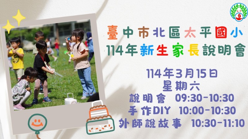 #114學年度太平國小、太平附幼,熱烈招生中 連FB-3月15日-新生家長說明會暨STORY TIME新生體驗