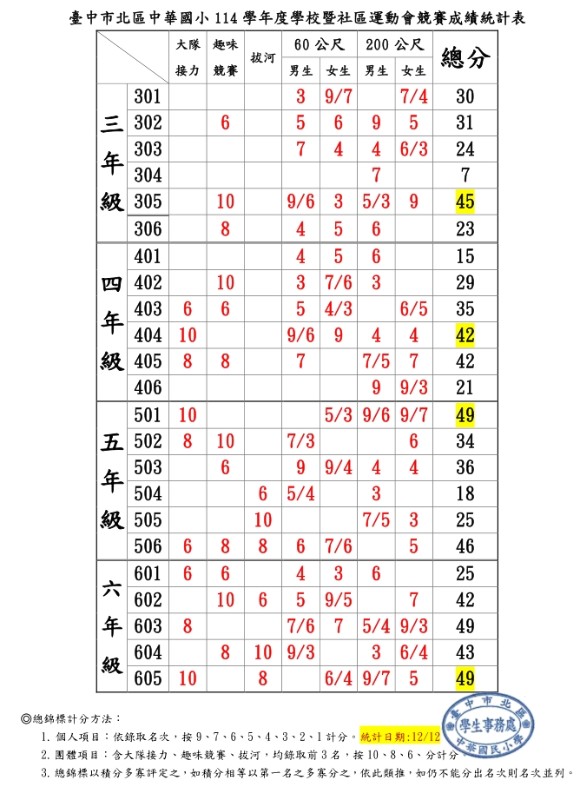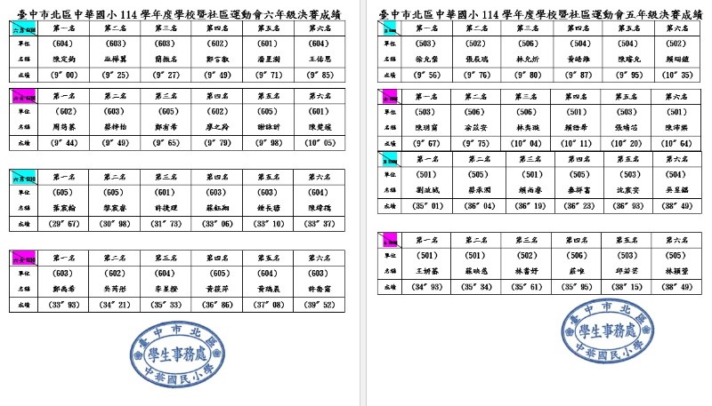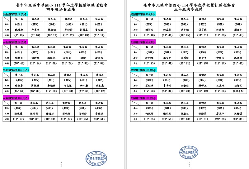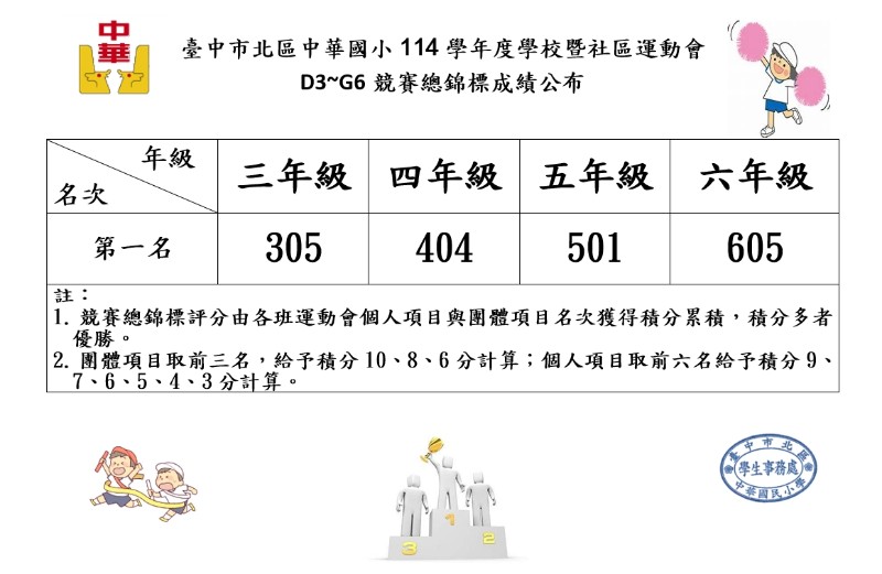 114運動會成績公告~~~恭喜獲獎班級