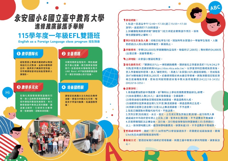 | 標題 | 西屯區永安國小與國立臺中教育大學開始辦理EFL雙語班囉! |
