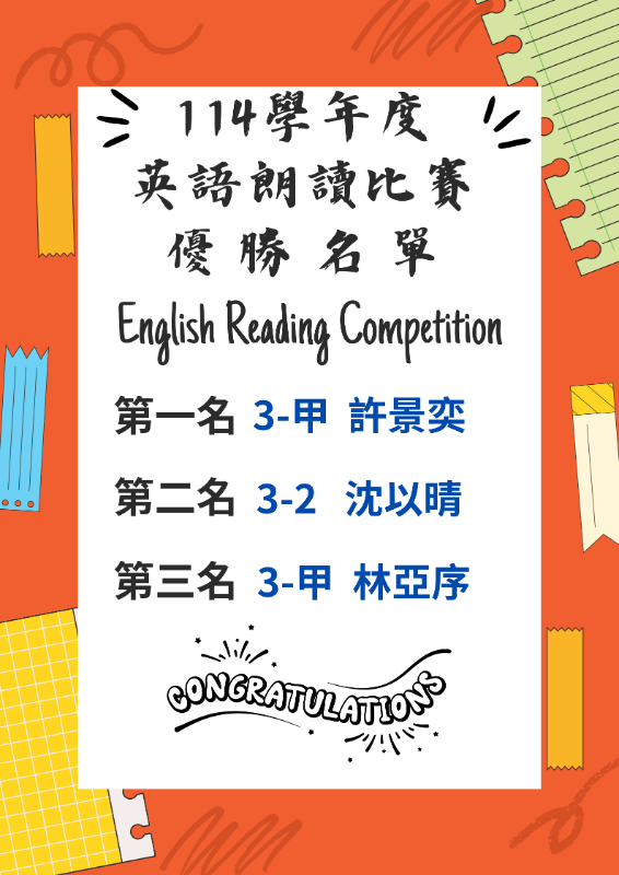 | 標題 | ★★114學年度三年級校內語文競賽《英語朗讀》成績公布 ★★ |