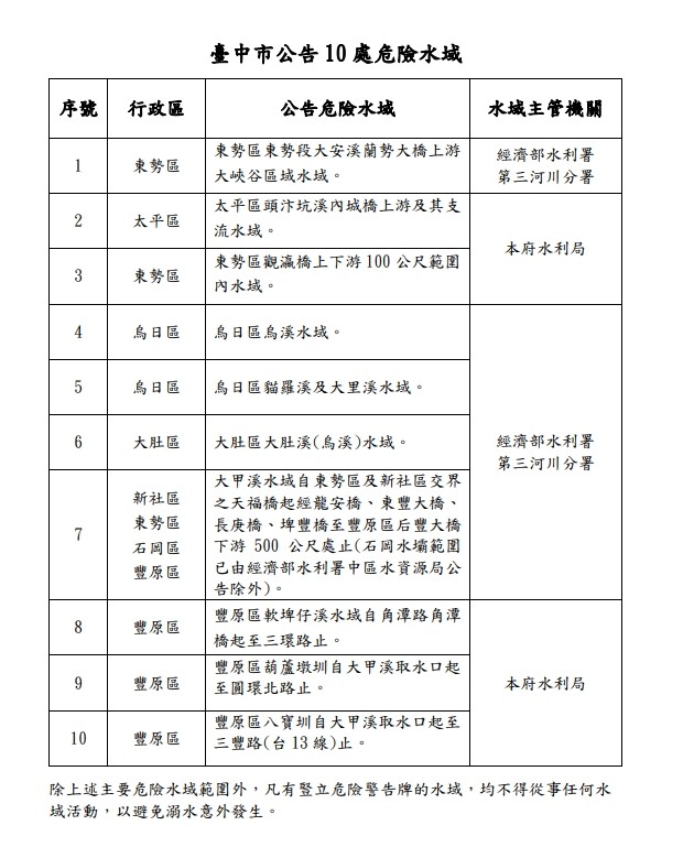 | 標題 | 【轉知】台中市十大危險水域 |