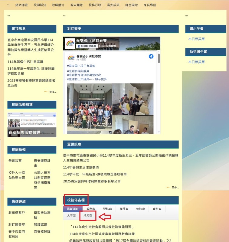 幼兒園相關訊息請至校務佈告欄幼兒園專區