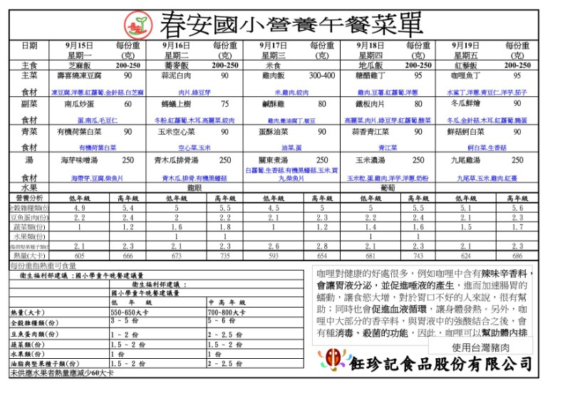 餐點表公告-114學年度第3週午餐