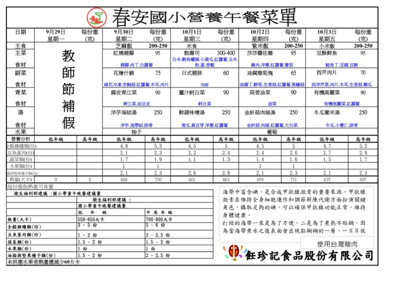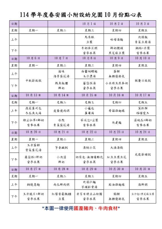 餐點表公告-114學年度第5週午餐與114.10月點心表