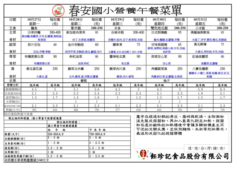 114學年度第9週午餐