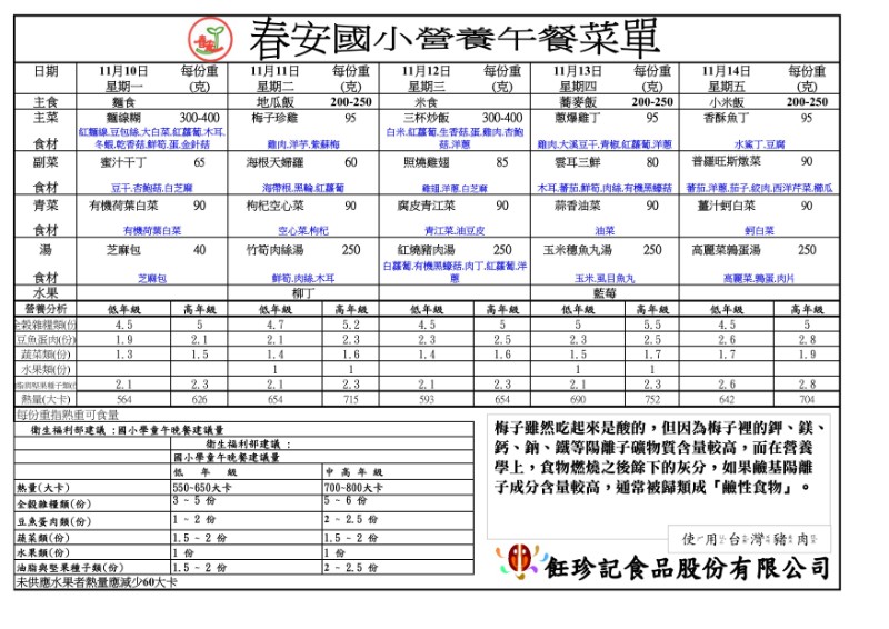 114學年度第11週午餐