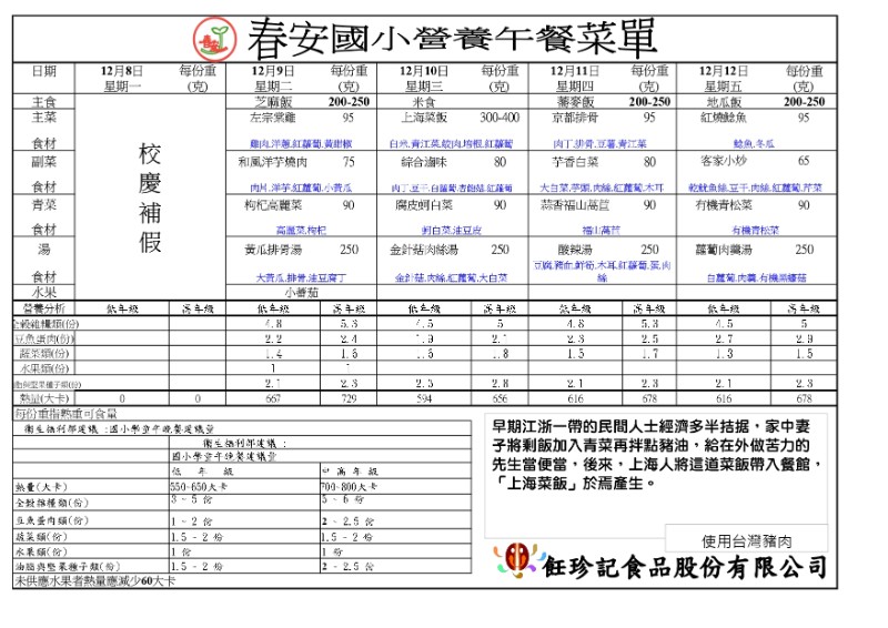 餐點表公告-114學年度第15週午餐
