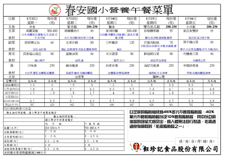 餐點表公告-114學年度第20週午餐
