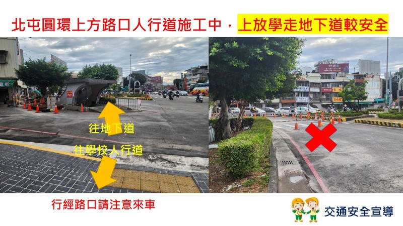 交通安全宣導-北屯圓環施工學生家長接送注意事項