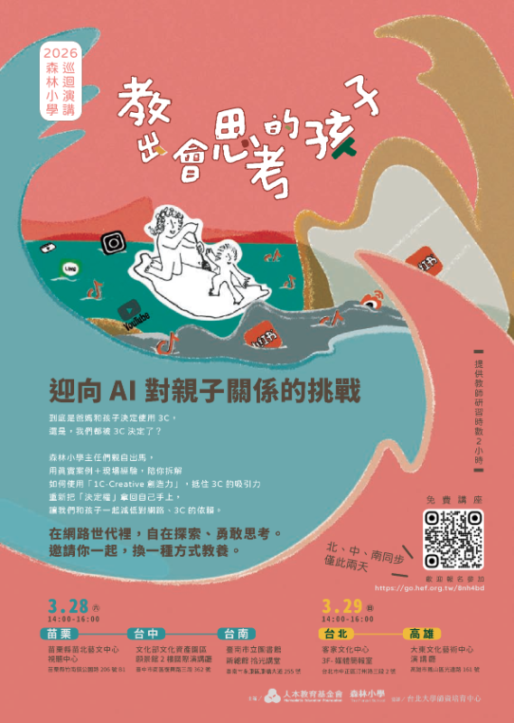 轉知 教出會思考的小孩-2026森林小學巡迴演講:向AI對親子關係的挑戰 |