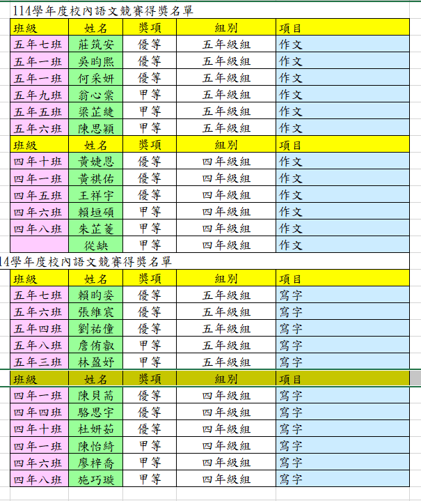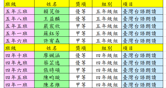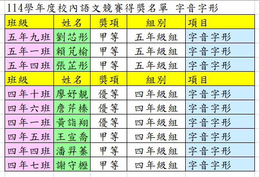 【校內語文競賽】12月24-26日賽事成績公告