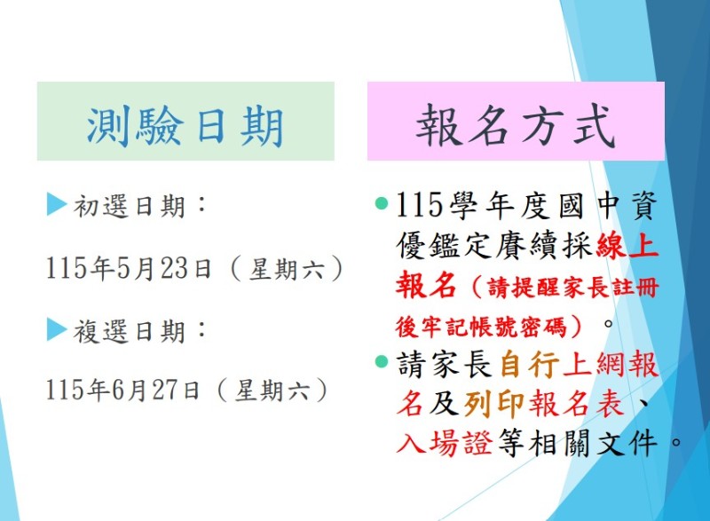 臺中市115學年度國民中學學術性向資賦優異學生鑑定