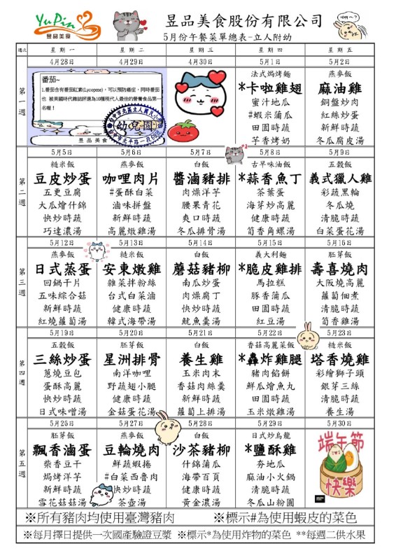 故為提升供餐品質,預計將5月15日主菜調整為脆皮雞腿。