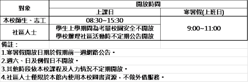 文昌社區共讀站開放時間