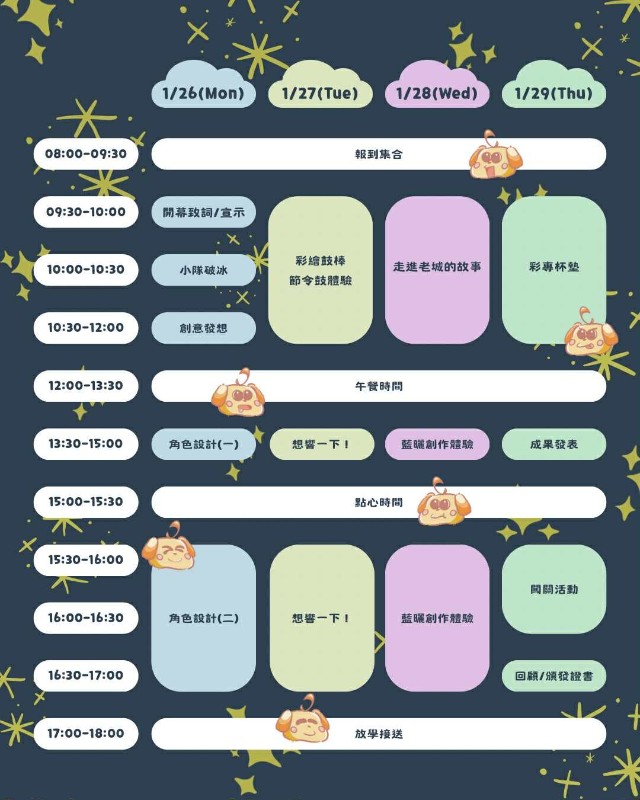 營隊日期:2026/01/26(一)~2026/01/29(四) |