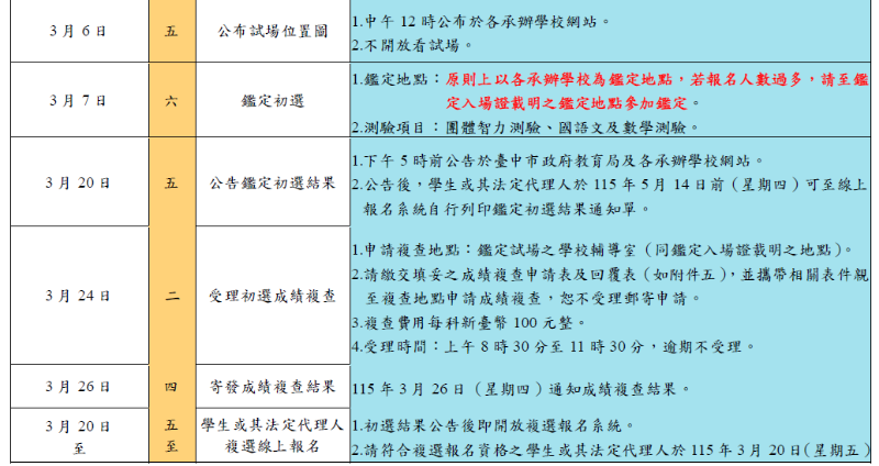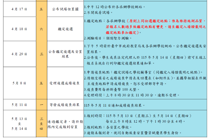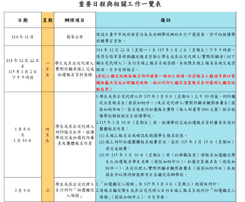 臺中市115學年度國民小學一般智能資賦優異學生鑑定安置簡章及初選報名系統操作說明