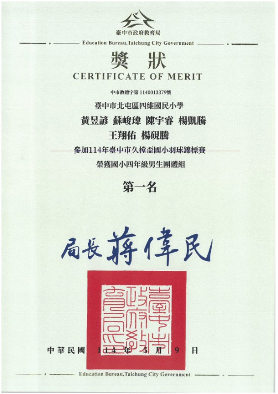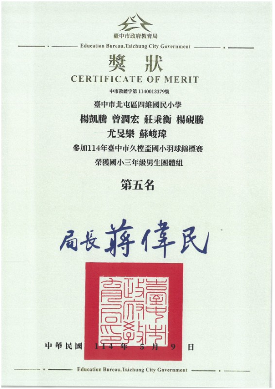 | 標題 | 賀!羽球隊參加114 年臺中久樘盃國小羽球錦標賽榮獲冠軍! |