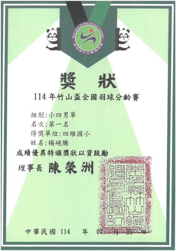 | 標題 | 賀!羽球隊參加114年竹山盃全國羽球錦標賽獲得佳績! |