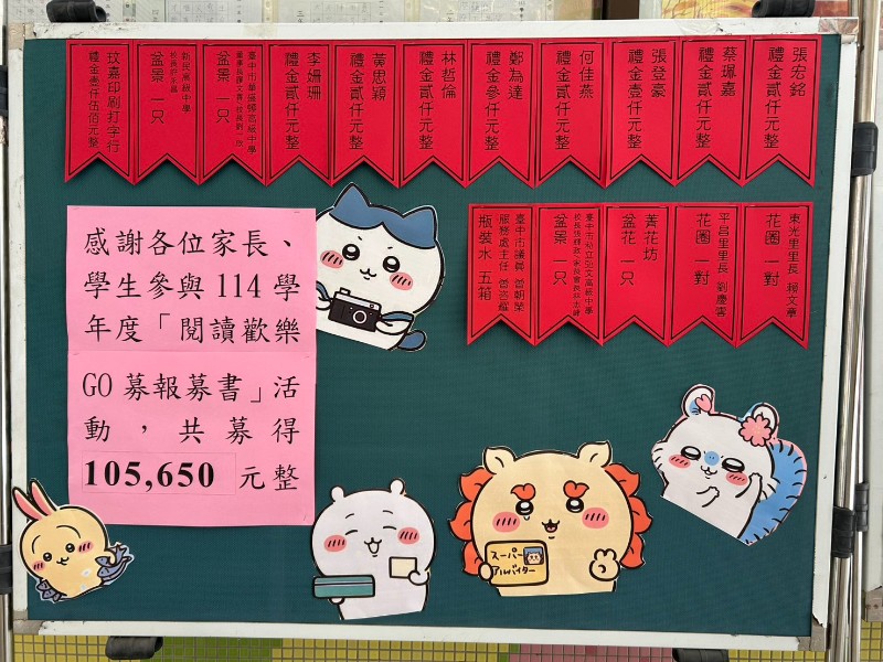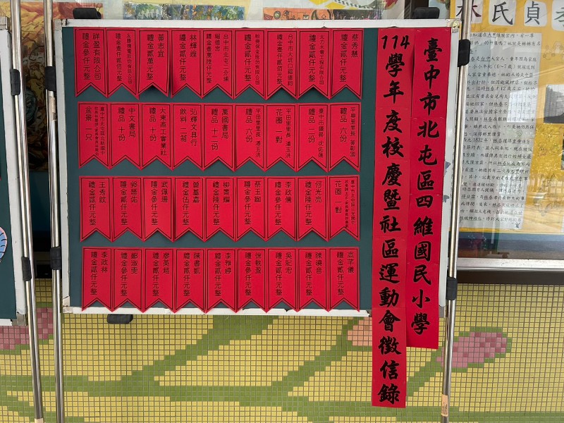 感謝各界捐贈本校114學年度校慶暨運動會禮金、禮品