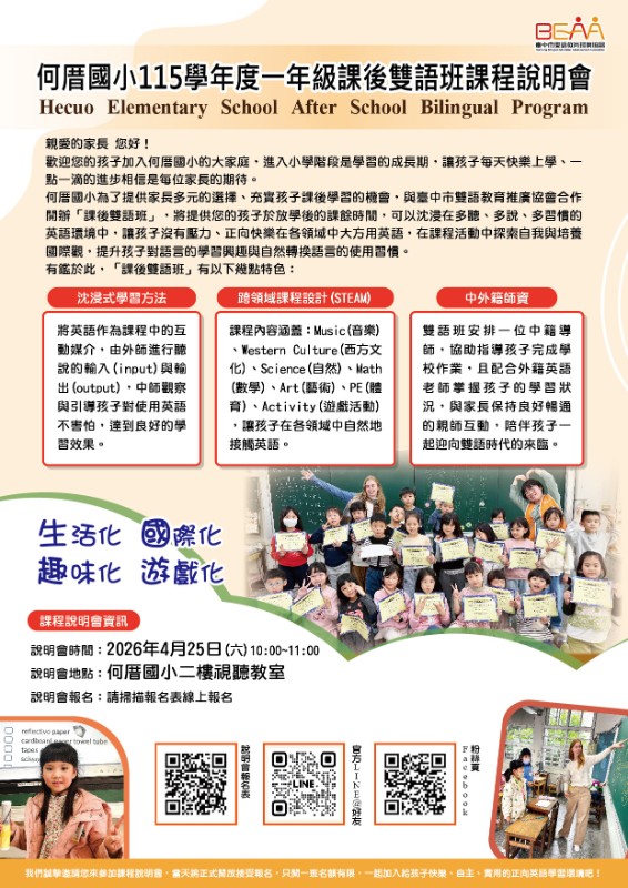 115學年度一年級課後雙語班課程說明會