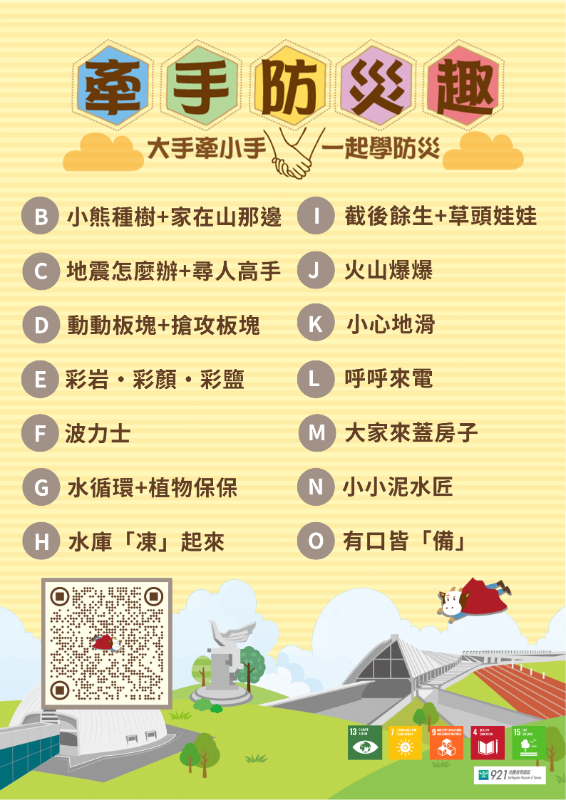 一、依據國立自然科學博物館114年10月17日館自(三)字第1140009211號函辦理。 二、園區致力於推廣地震科學、建築安全及防災教育,特別規劃旨揭活動,透過套裝課程,帶領大家從多元主題來認識地震與防災。 三、旨揭活動資訊如下: (一) 活動對象:新竹、苗栗、臺中、彰化、南投、雲林、嘉義及臺南等地區小學,以未申請過本活動或申請全日課程之學校為優先錄取對象。 (二) 活動期間:115年3月至5月。 (三) 活動地點:申請課程之國小校區,請事先準備適合活動之室內空間。 (四) 活動費用:依照所選課程及參加人數收取材料費,若不足15人以15人計收。 (五) 申請期間:114年11月1日上午10時開放申請,至114年11月30日下午5時截止。 (六) 申請方式:網路申請,詳情請見活動網址https://www.nmns.edu.tw/park_921/learn/school/activity/。 (七) 申請結果:113年12月10日中午12時於園區官網公告https://www.nmns.edu.tw/park_921/learn/school/application-result/。 三、檢送旨揭活動海報電子檔1份。 https://www.nmns.edu.tw/park_921/learn/school/activity/ https://www.nmns.edu.tw/park_921/learn/school/application-result/