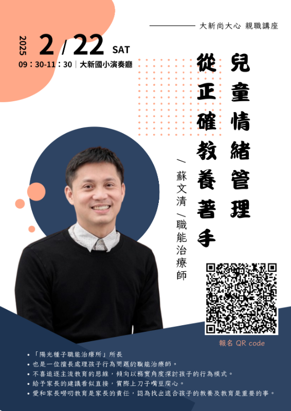| 標題 | 【親職講座】大新國小將於2/22(六)辦理親職講座,歡迎本校家長報名參加 |