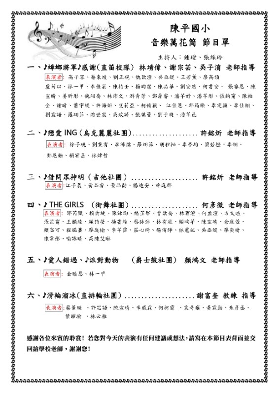 今年的音舞季學生表演開跑了!歡迎家長們到場給孩子鼓勵~~