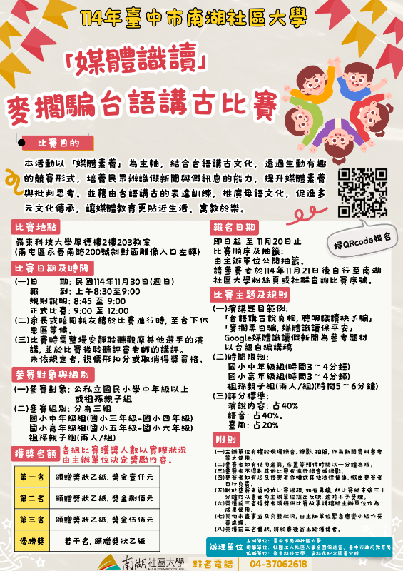 相關報名作業如有疑問,請逕洽:程小姐(04-37062618#2032),電子信箱:P11135@teamail.ltu.edu.tw