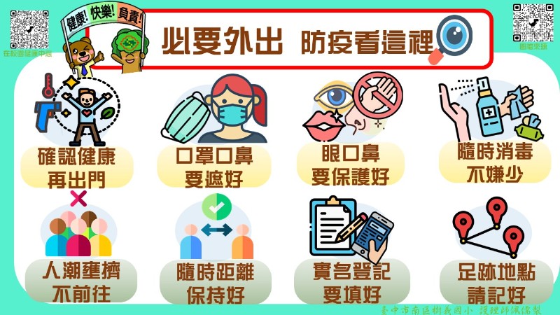 疫情的變化瞬息萬變~不轉傳未經政府官方證實的疫情資訊,除了官網外,其實很多政府機構的官方Line,可以即時獲得新資訊喔!!!相關足跡公告,僅代表著確診者曾到過的地點,若有同時間重疊足跡者,請務必自我健康監測14天(早晚體溫及症狀自覺),必要時前進本市快篩站(臺中市快篩資訊)!抱著確診者就在身旁的方式生活著!!!好好的照顧好自己,就是對這世界最大的善意與感謝!!!戴口罩、勤用肥皂洗手(搓洗>20秒,乾洗手也一樣喔!)、減少非必要出門、保持社交距離、不群聚!!!家庭防疫新生活運動:居家兩人以上佩戴口罩、家人不同桌共食、取餐公筷母匙、屋內勤消毒。