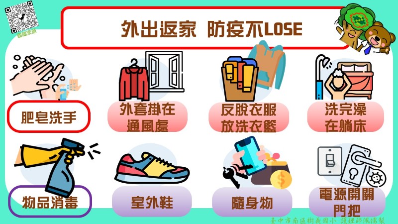樹寶抗疫 病毒OUT(路徑:校網首頁→主選單點入,內容包含─首頁、防疫專區及臺中市防治專區)