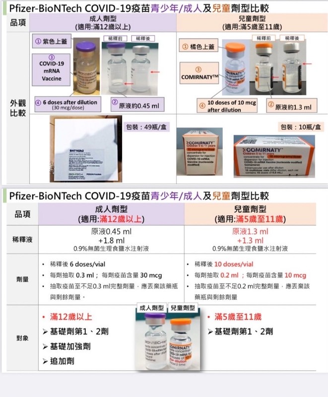 一、關於校內施打Pfizer-BioNTech COVID-19疫苗<年齡說明>: 因為12歲學童與5-11歲學童使用的疫苗包裝不同、劑量也不同。