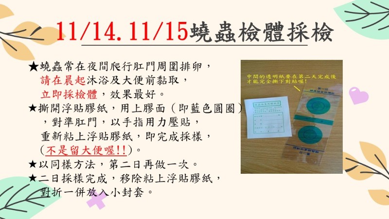 11/15(三)蟯蟲採檢後,在家採檢。