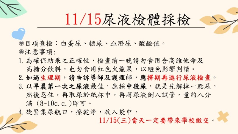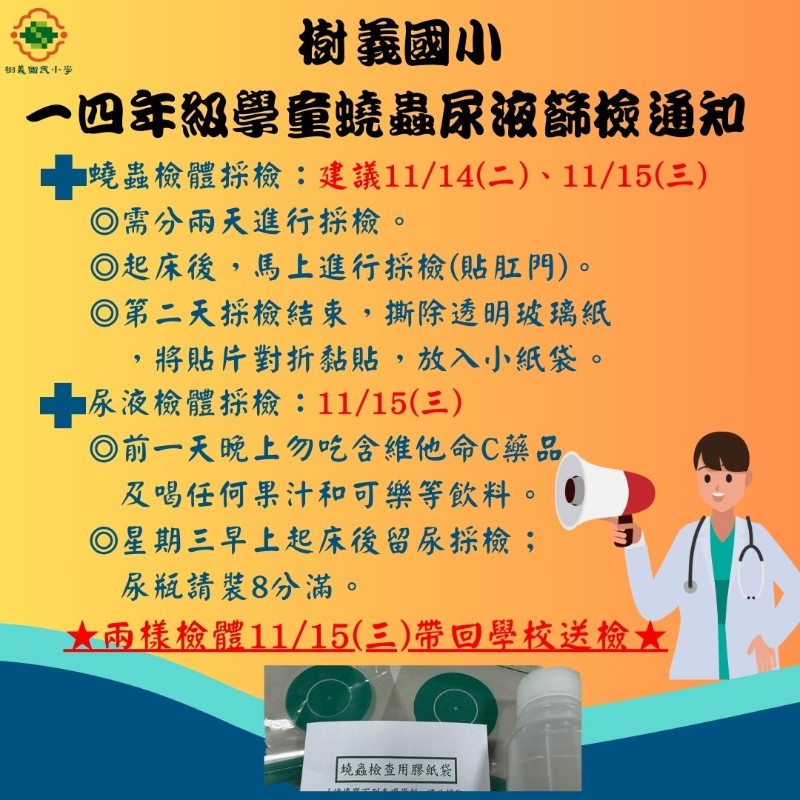 ★★尿液/蟯蟲採檢注意事項: