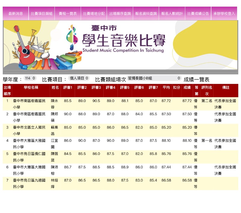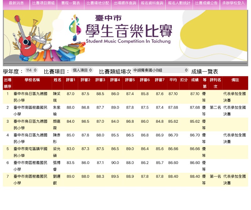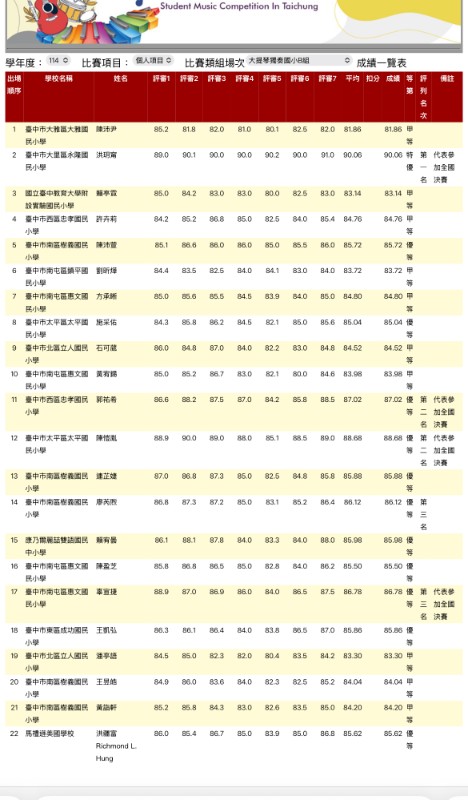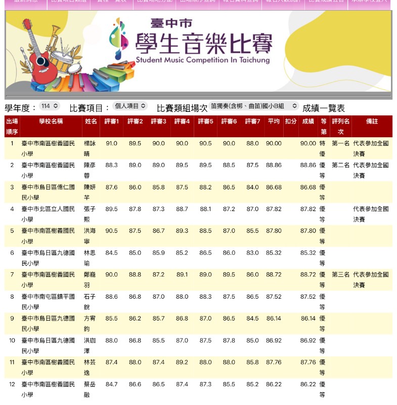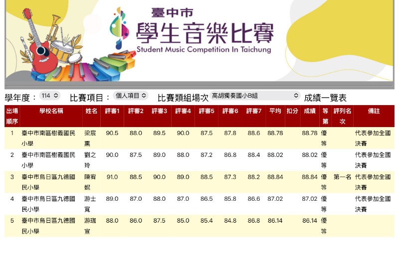 本校學生參加「全國學生音樂比賽臺中市初賽」表現優異,在個人賽中獲得亮眼成績, 恭喜本校多位學生在各項樂器組別中脫穎而出、獲得佳績!