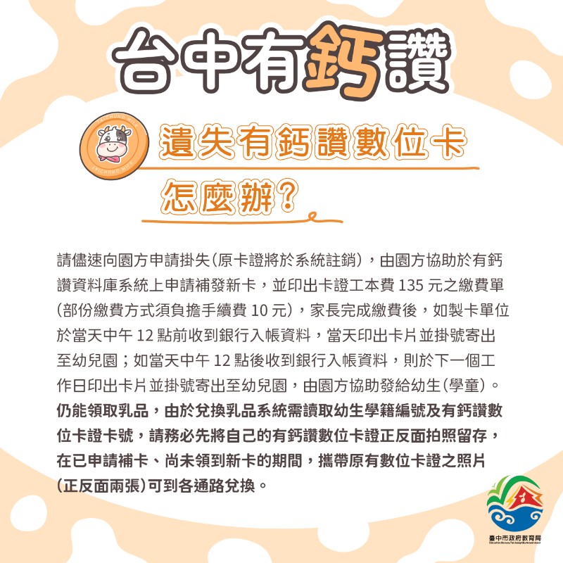 「台中有鈣讚」數位兌換鮮奶計畫 (國小懶人包&幼兒園懶人包)