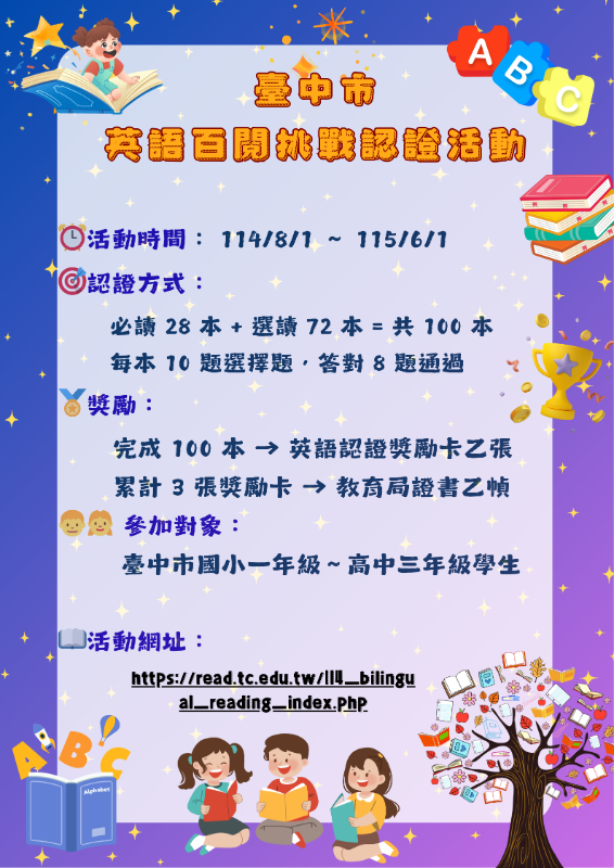 📚 臺中市英語百閱挑戰認證活動 活動目的