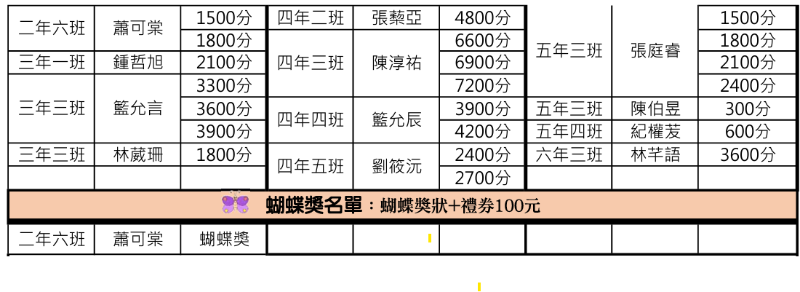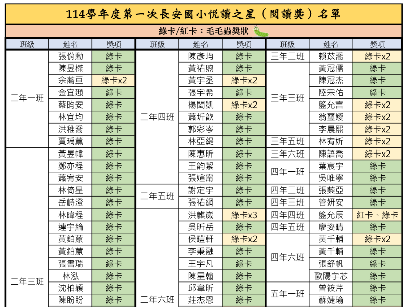 114學年度第一次長安國小悅讀之星(閱讀獎)恭喜以上得獎小朋友!!!