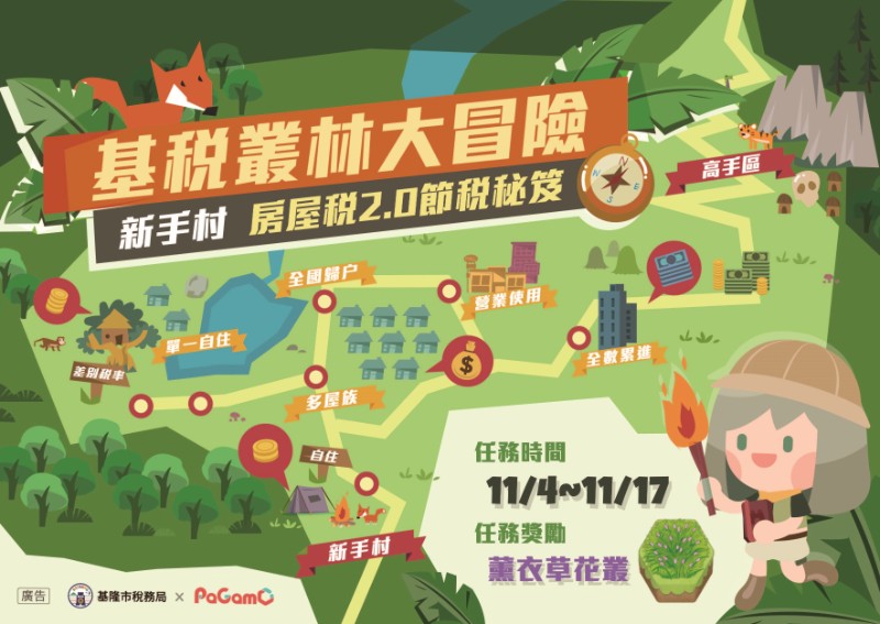⼀、依據基隆市稅務局(以下稱該局)114年11月3日基稅服貳字第1140100265號函辦理。⼆、本案係為提高國中、國小學生對租稅學習的興趣,並宣導各稅開徵稅務新知及統一發票兌獎APP,該局與PaGamO線上學習平台共同舉辦旨揭線上學習活動。三、活動詳情,請參閱該局官網,連結網址為https://gov.tw/jv3。四、檢附活動海報1份。