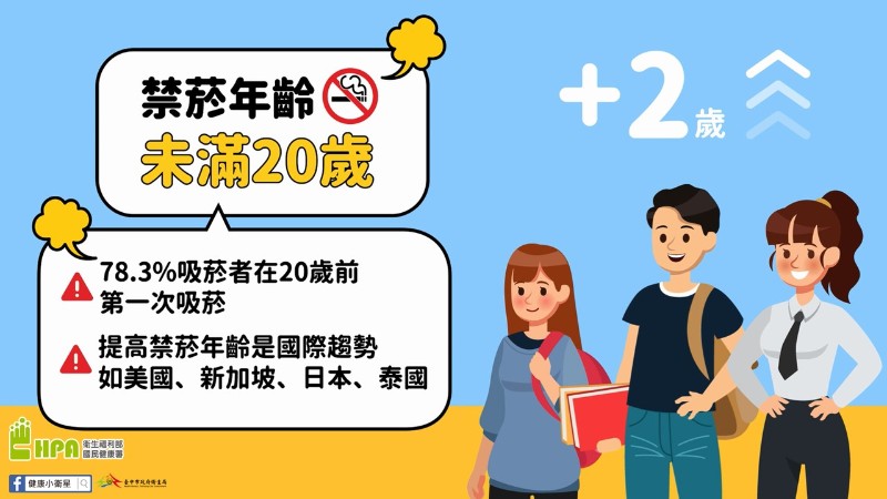 菸害防制法新法上路「全面禁止使用電子煙及未經審核之加熱菸,違者最高罰新臺幣1萬元」臺中市政府衛生局提醒您! 菸害防制法新法上路「擴大禁菸場所,大專院校、幼兒園、托嬰中心、居家式托育服務場所,室內外全面禁止吸菸,免費戒菸專線0800636363。」臺中市政府衛生局提醒您! 菸害防制法新法上路「未滿20歲不得吸菸,未查驗身分供應菸品予未滿20歲者,最高罰25萬元。」臺中市政府衛生局提醒您!